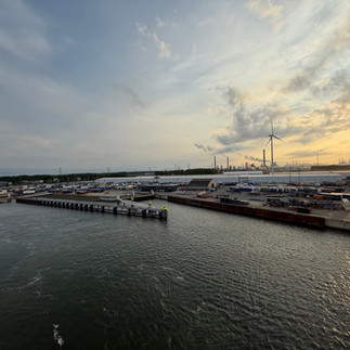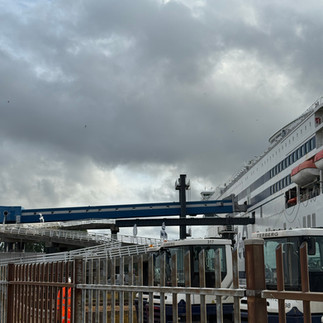Nous entrons ensuite dans la bibliothèque, forcément, dont Patrick parvient à m’extirper rapidement car tout est en néerlandais. Nous flânons encore un peu dans les ruelles aux alentours et reprenons le tank en direction du port. Sauf que Rotterdam est un des plus grands ports du monde, il nous faut donc rouler une trentaine de minutes pour arriver au quai ! On sent qu’on vieillit car croyez le ou non nous arrivons 1h avant le dernier call d’embarquement, une avance absolument inédite nous concernant.