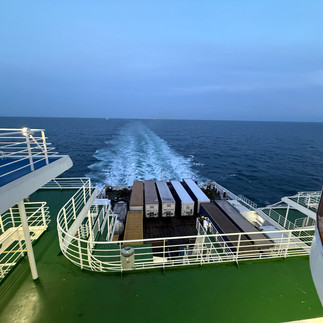 Petit coup de stress à la douane, apparemment on n’est pas sensé entrer avec du fromage. Oupsi, on est parti avec 1.5kg de gruyère (bah oui hein, normal). On vous dira demain si on est en prison ou si on a survécu ;) On découvre un immense ferry, on n’a jamais été dans un truc si grand ! Il y a 400 camions et 250 voitures qui entrent pas une espèce de rampe en colimaçon. Il y a même un chenil pour les chiens qui n’ont pas le droit d’aller dans le bateau. Grande classe ! Moins classe par contre, notre minuscule cabine avec lits à étage. On part donc à la découverte du ferry, qui contient deux restaurants, un cinéma, deux bars, deux duty free et une salle de spectacle. On mange dans un buffet franchement pas mauvais, puis sortons sur le pont regarder le départ. C’est un port vraiment hyper impressionnant avec des citernes de pétrole partout, des immenses containers, des bâteaux qui se chargent de béton et/ou de charbon!