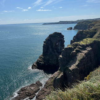 Ce matin, nous avons 22 degrés et partons donc sous le soleil en direction du cap Fréhel (classé Grand Site de France). En chemin, nous voyons la magnifique plage de Sable-d’Or-les-Pins (ils se facilitent la vie avec les noms franchement). C’est une station balnéaire construite de toute pièce en 1920 pour concurrencer Deauville qui, avec les problèmes financiers et la WWII, n’a jamais été terminée. N’en demeure pas moins que la plage de 3km est très belle.