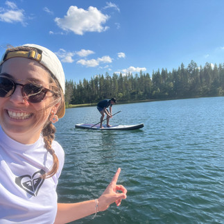 Confiant dans nos compétences de navigation aquatique, nous troquons le canoë pour les paddles. C’est alors une autre histoire. On se lance à genou, et prenons la confiance. Je me lève et pagaie sans trop de difficulté, et tourne la tête juste à temps pour voir Patrick tanguer un coup à gauche, un coup à droite, puis dans l’eau dans un concert d’éclats de rire de ma part. Il se hisse sur son paddle et m’explique avec le plus grand sérieux que c’est la faute du paddle qui n’est pas assez gonflé. Qu’est-ce qu’on rigole !