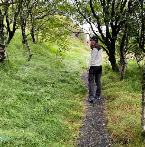Poursuite de notre route jusqu’à Dverghamrar, où la falaise des nains. Un petit amas d’orgues basaltiques vieux de 2 millions d’année résultant du refroidissement rapide d’une coulée de lave. Joli petit bois de bouleaux, on sait pas d’où ils sortent ceux-là !