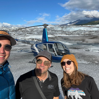 Nous nous enfonçons ensuite dans la vallée de la Knik river. C’est magnifique! Nous poursuivons notre route jusqu’à ce que celle-ci se termine et arrivons dans un endroit avec un restaurant, des petites cabines pour dormir et… des hélicoptères!