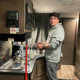 S’ensuit alors un épisode digne de nous: nous passons 2h à faire les courses en essayant de penser à tout, de l’éponge vaisselle aux épices en passant par les sacs poubelles. Nous allons ensuite tout ramener au camper et faisons un premier faux départ car on a oublié la moutarde, un deuxième faux départ car on réalise que c’est hors de prix de téléphoner depuis notre abonnement suisse (plus de 30.- de téléphone en 1 jours en ayant presque pas téléphoné) et qu’on est obligé d’avoir un numéro pour reserver les campings donc on trouve un natel américain pas cher, on en profite pour acheter une bouteille de rouge, et s’en suit un dernier faux départ car on ne sait pas faire marcher le téléphone et on n’a pas de tire-bouchon. Bref, après toutes ces péripéties et littéralement 3h dans ce supermarché on part enfin ! Patrick gère tant bien que mal ce véhicule énorme, pour la petite histoire en suisse on n’aurait pas le droit de conduire ça avec nos permis (+ de 3.5 tonnes).