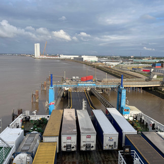 Après une nuit franchement agréable, on se réveille au sursaut du réveil, pour réaliser qu’on a oublié de tenir compte du décalage horaire et donc qu’on a encore une heure devant nous. Oupsi. On se rendort donc paisiblement, pour se refaire réveiller en sursaut par une annonce dans le haut parleur à 3cm de la tête de Patrick pour nous dire d’aller prendre le petit dej. Quelle brutalité ! Un café et un muffin plus tard, puis 56 tours de bateau en raison d’un problème technique au débarquement, nous sortons du bateau à 8h15 heure locale. Le déchargement est franchement impressionnant. À peine avons-nous mis un pneu en territoire anglais qu’une voiture de police passe devant nous, sirène hurlante, il n’en fait pas moins à Patrick pour s’exclamer « je t’avais dit, ils viennent pour notre gruyère! ». Rassurez-vous, on ne s’est pas fait arrêté et sommes entrés en terres anglaises sans encombre, avec notre gruyère. Sauf qu’avec tout ça, on a oublié de rouler à gauche! Après quelques mètres on se rabat donc du « bon côté » juste avant de prendre le premier rond-point. Bon du coup on est tout de suite dedans !