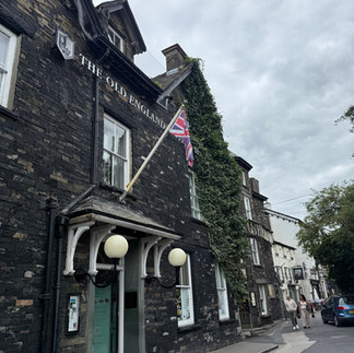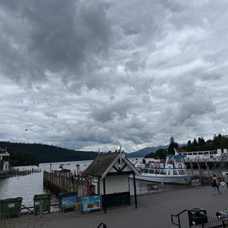 Après un arrêt par heure pour faire 10 tours de van pour Clem qui prend très au sérieux le fait de marcher et faire circuler le sang pour le bébé, on se fait la remarque qu’on doit être les seules personnes à être autant ravies de s’arrêter dans les aires d’autoroute. A chaque fois on inspecte les rayons pour voir ce qu’il y a de spécifique au pays. Je repars ainsi ravie avec de la glace au marshmallows (bah oui il faut bien utiliser notre mini congélateur). On arrive en milieu de journée à Windermere, un très improbable village perdu au milieu de la campagne anglaise dans le lake district national Park, visiblement très touristique, il y a plein de monde ! On arpente les jolies ruelles et mangeons une pie dans un tea-room vraiment très typique, avec moquette à carreaux par terre s’il vous plaît. Bon on n’avait pas compris qu’il y avait des frites avec la pie en question, en tout cas on est calé pour un moment !