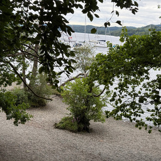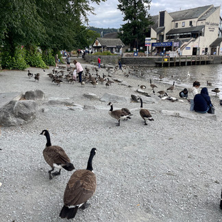 On finit par comprendre que ce village est célèbre car c’est de là que vient Pierre Lapin (enfin son autrice), il y a même un musée. On se contente de passer devant, et longeons le lac. C’est franchement hyper joli, tout fleuri et rempli d’oies sauvages. On retourne au camping en longeant le lac.