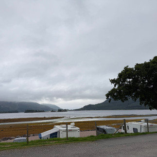 Après un stop détente de jambe allié aux courses dans un Morrisson’s (oui parce qu’on a nos supermarchés de prédilection) et avoir traversé Glasgow, on repart direction le Loch Lomond. On s’arrête à Firkin point, un point au bord du lac où les gens campent, font du paddle, se baignent… courageux parce qu’il ne fait que 17 degrés et l’eau n’est franchement pas très chaude. Mais c’est joli, une petite rivière se jette dans le lac et tout est vert.