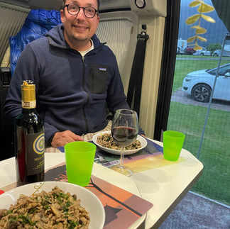 Après encore une dizaine de minutes, nous atteignons le camping, à Glencoe. Il est au bord d’un lac, c’est très joli. Nous nous faisons un émincé d’agneau avec riz et champignons, et évidemment une salade de concombres puisqu’on nous sommes partis avec la moitié de notre jardin!