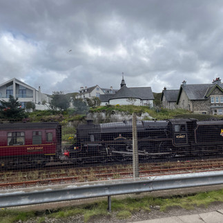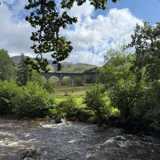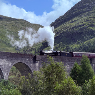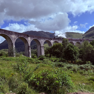 Ce matin, nous nous réveillons au son des gouttes de pluie et nous mettons rapidement en route car on a rendez-vous. En effet, au programme ce matin, le viaduc de Glenfinnan. Vous allez dire pourquoi rendez-vous? Car on doit y être à une heure précise pour voir passer le Poudlard Express ! Je sais pas si ma petite passagère sent mon excitation mais elle se lance dans une gymnastique intense, donnent des coups dans tous les sens. On se met donc rapidement en route et arrivons 30’ en avance, confiants, et découvrant une véritable foire d’empoigne. Un délire, le parking est complet et les gens se gardent n’importe où. On finit donc par se garer au bord de la route, testant les capacités tout-terrain du tank et en priant pour ne pas être embourbé à notre retour, et trottinons au bord de la route car avec tout ça on n’a plus notre précieuse avant. Nous arrivons donc, Patrick frais et moi haletante, au pied du pont pile à l’heure du train. Décidément, on n’est pas fait pour être en avance. La magie opère est l’immense locomotive à vapeur surgit, et s’arrête même sur le pont. On se croirait dans le film (Harry Potter donc pour ceux qui ont pas la réf). Des étoiles plein les yeux, on regarde donc le train passer sous un magnifique rayon de soleil.
