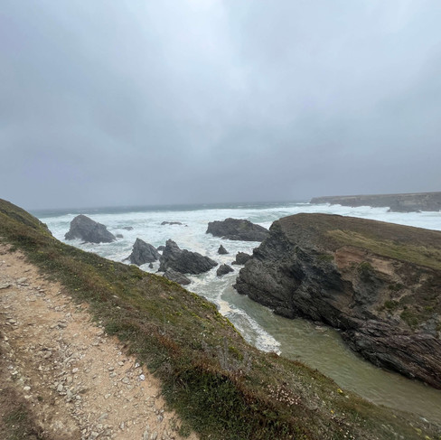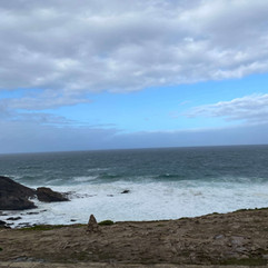 Ensuite on va voir la plage de Donnant, on se prend une rincée donc on ne voit pas la plage de sable « roux doré pailleté de blanc et de noir », n’en demeure pas moins que c’est très beau.