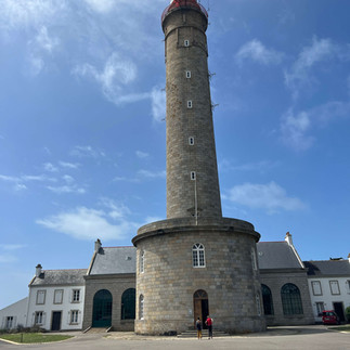Après ce bon ravitaillement, on attaque la traversée en largeur jusqu’au phare de Goulphar, un phare qui culmine à 92m! On s’économise les 247 marches car la plateforme du phare est fermée à cause du vent ! Il faut bien admettre qu’on n’a jamais vécu un vent pareil, qu’on se prend évidemment en plein face pour rouler ! Pour vous prouver qu’on exagère pas, sachant qu’il y a des rafales à 97km/h!