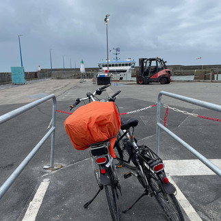 On laisse le bus au parking et prenons nos vélos, direction le ferry à Quibéron, station balnéaire lancée au 20e par les lyonnais apparemment. On apprend qu’on est le dernier à partir en raison d’une tempête prévue, on se dit à ce moment-là que le plan camping en tente s’annonce compromis. On trouve une chambre à Belle-Ile et ne prenons donc pas l’entier du matos de camping, c’est peut être pas plus mal compte tenu du fait qu’on est les seuls zinzins à embarquer à vélo !!
