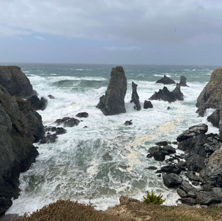 On roule ensuite un peu plus loin à Port-Coton pour admirer les aiguilles qui sortent de la mer ! Sans rire on se fait malmené par les bourrasques de vent et on reste prudemment loin du bord, mais on l’écume qui s’entasse pareille à de la ouate (d’où le nom) et les vagues qui s’écrasent au bord avec une force inouïe. C’est vraiment splendide !