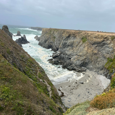 25 kilomètres plus tard, on termine notre périple au nord de l’île à Sauzon où de jolies maisons alignées le long du port nous accueillent. Finalement pas tant de pluie mais des bourrasques de fous furieux, on est assez ravis d’arriver à l’hôtel et de dormir dans une chambre ce soir.
