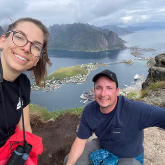 Ensuite, on se parke à Reine, village donné pour être le plus joli des Lofoten et signifiant littéralement écrin royal, pour nous lancer à l’assaut de Reinebringen, la fameuse rando qu’on avait faite sous la pluie battante en 2016, avec 500 m de dénivelé droit en haut. Depuis ils ont terminé le chemin de pierres (à la main sans machine) ça s’annonce donc vraiment plus facile qu’à l’époque où on faisait un pas en avant et deux en arrière dans la boue. Bon ça s’annonce aussi plus peuplé du coup, pas c’est pas grave on remonte quand même la haut pour admirer Reine du haut.