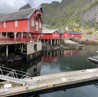 Mais la route en elle-même est évidemment magnifique et on traverse plein de villages reliés par des ponts et des tunnels, on ne sait plus où donner de la tête. On remarque notamment Hamnøy et Sakrisøy, deux villages de pêcheurs avec des montagnes tranchants en arrière plan. Splendide.