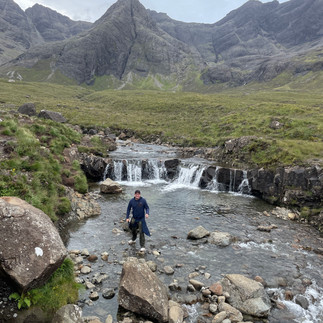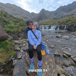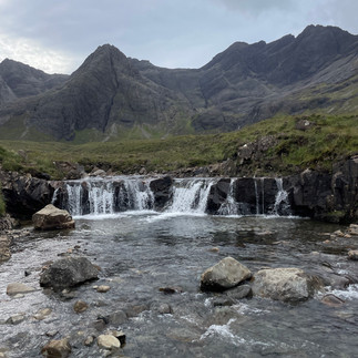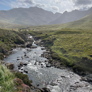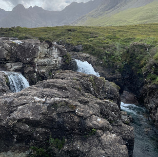 Ce matin, nous nous levons face à l’océan. Pas mal comme situation ! C’est notre camping coup de cœur pour le moment. Après un muffin et un café au café du camping, nous nous mettons en route pour les Fairy Pools. Nous étions venus ici il y a 11 ans ! Il s’agit d’une jolie marche le long d’une rivière qui a creusé des bassins naturels, le tout dans une vallée magnifique. Il s’agit du début des Cuilling Hills, qui sont le massif montagneux (culminant à 992m) couvrant cette partie de l’île. Pour la petite histoire, notre ami MacLeod (le chef du clan précisément) avait mis en vente les montagnes pour 10 millions de livres en l’an 2000 pour réparer le toit de son château (Dunvegan donc, celui qu’on a visité hier). Il ne trouva jamais d’acquéreur, sans blague ! Et les habitants de Skye étaient indignés, arguant qu’il s’agissait d’une propriété de l’île. Le projet est toujours à l’étude aujourd’hui pour en faire un parc national.