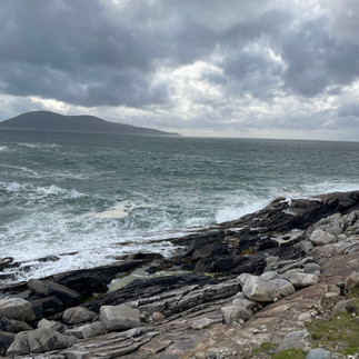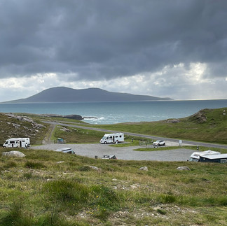 Nous traversons des paysages incroyables, on se croirait sur la lune. Il y a plein de mini lacs ça et là des cailloux désertiques mais où l’herbe semble miraculeusement pousser et évidemment des moutons par-ci par-là. On s’engage sur la Golden Road qui fait le tour de la partie sud de l’île, longeant l’océan où l’on voit d’imposantes vagues, mais nous nous arrêtons rapidement. Nous nous établissons pour deux nuits à Talla na Mara, avec la certitude d’avoir atteint le bout du monde. Nous poursuivrons le tour de la péninsule demain. Nous sommes dans une espèce de place de camping, comprendre ici 5 emplacements face à une colline herbeuse elle-même face a l’océan, avec des sanitaires (très propres) dans un container, le tout protégé par un portail dont nous avons reçu le code par mail. L’accueil est peu chaleureux donc, mais l’endroit est à couper le souffle. Ce soir, c’est saumon courgettes riz :)