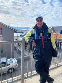 Après ça, direction Husavik, capitale de l’observation des baleines en Europe! Vous devinez la suite… c’est parti sur un zodiac en pleine mer ! Patrick a peur d’avoir le mal de mer et moi je continue à me demander comment on peut être serein sur un canoë en plastique alors que les plus grands mammifères de la planète sont littéralement à côté de nous. Pourquoi ils décideraient pas de donner un coup de queue pour nous renverser ? Ou de faire un écart à leur régime planctontarien? Bref, la fine équipe part en mer dans un look super trendy.
