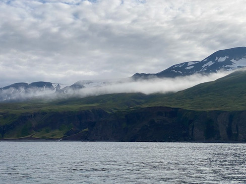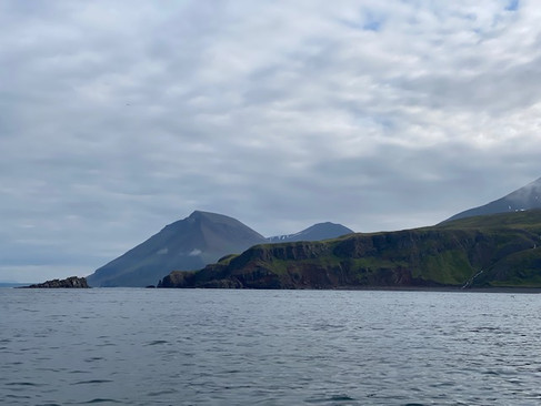 On voit tout d’abord une île sur laquelle il y des milliers de macareux !! C’est impressionnant ils sont partout ! On apprend d’autres fun fact sur eux; c’est un oiseau très maladroit et très lourd donc ils ne peuvent pas planer, ils doivent battre des ailes en permanence sinon ils tombent à pic! En les observant du niveau de l'eau on remarque d'ailleurs que lorsqu'ils veulent repartir ça a l'air compliqué, une fois sur deux ils piquent du nez c'est franchement à mourir de rire on dirait qu'ils ont trop bu ! On les voit de loin ceci dit, donc nos falaises à macareux restent dans le top principal ! Sur la photo avec l'herbe chaque tâche est enfait un macareux, ça en fait un sacré paquet.